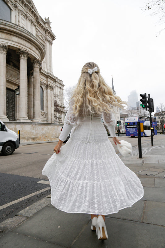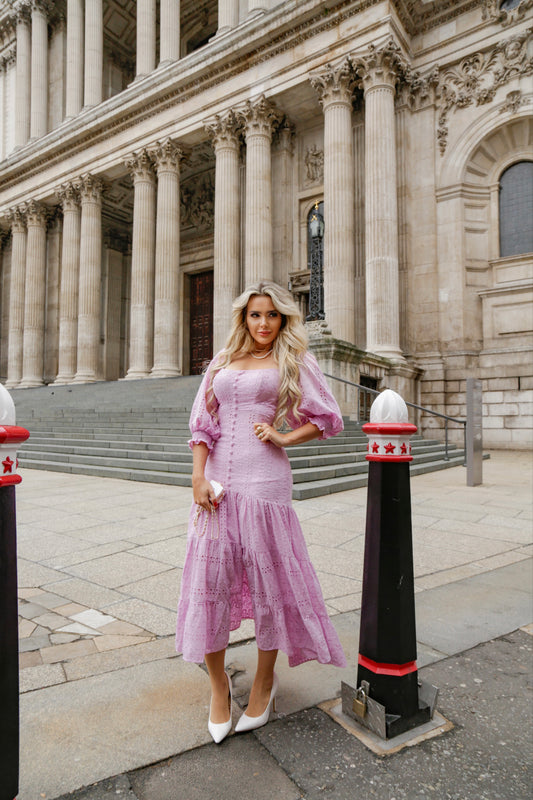 Darling - Beige Midi Dress w/ Small Rainbow Stripes