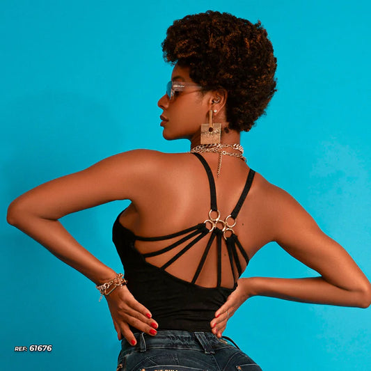 Black and Silver Cropped Top w/ Keyhole Cutout