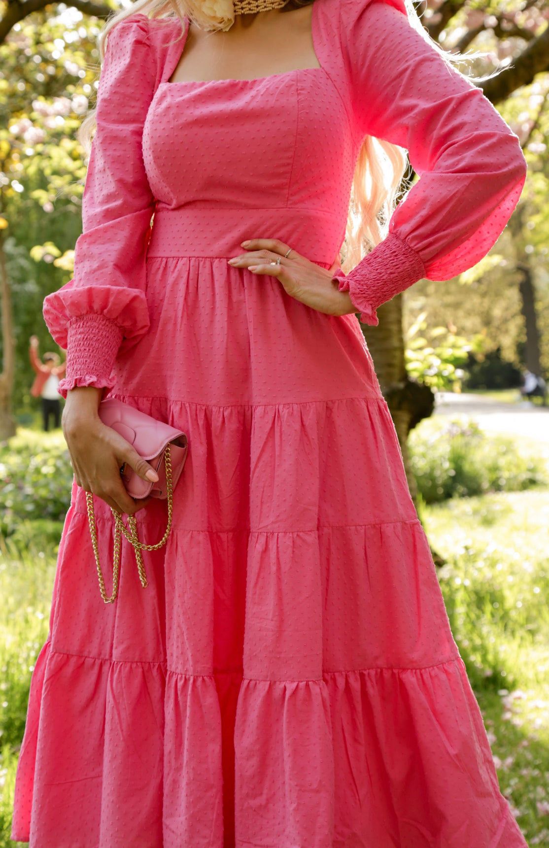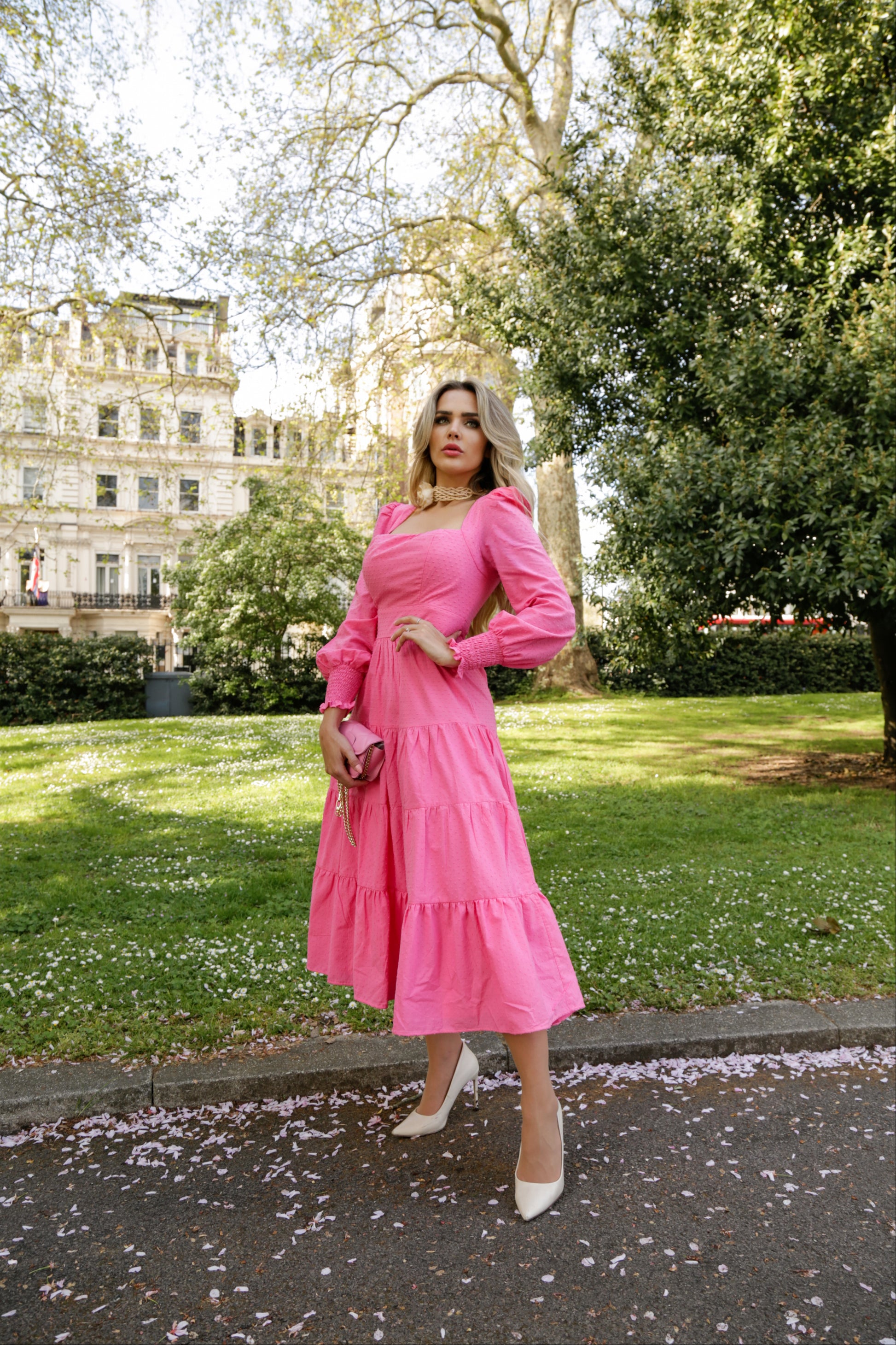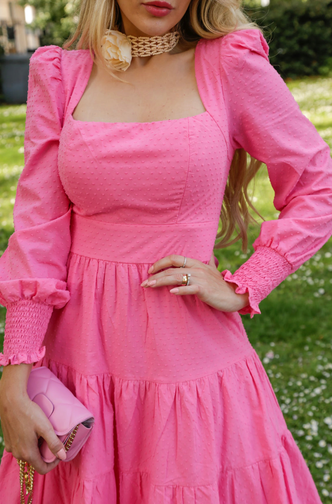 Introducing the enchanting Kate Dress, a delightful pink long sleeve midi dress that effortlessly combines elegance and playfulness. Crafted with a swing style skirt, this dress boasts a graceful and flowing silhouette that dances with every step you take. The square neckline adds a touch of modern sophistication, beautifully framing your collarbone and shoulders. The charming pink hue infuses the ensemble with femininity and a romantic allure, making it perfect for a variety of occasions. With its long sleeves, the Kate Dress provides both style and comfort, allowing you to embrace a look that is as chic as it is effortlessly graceful.