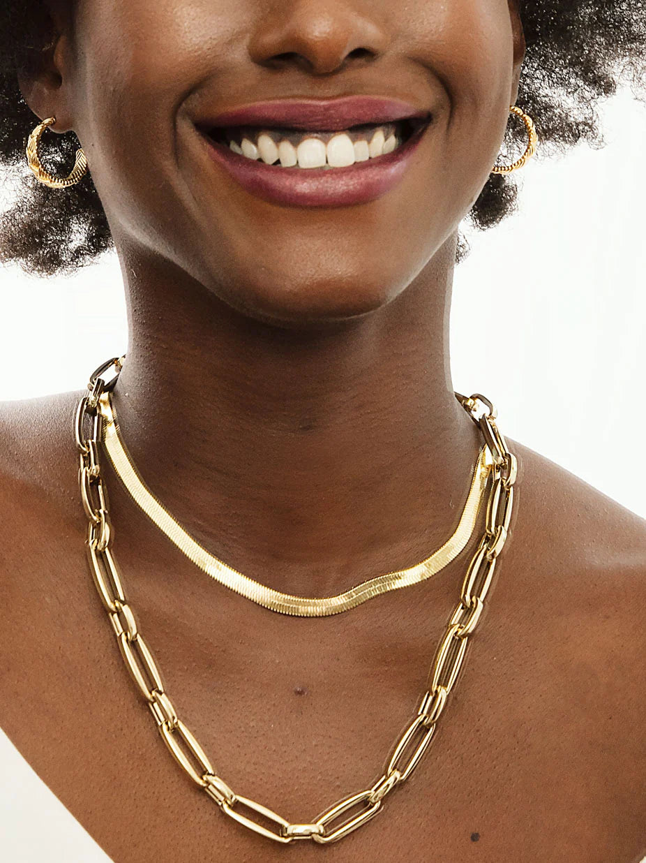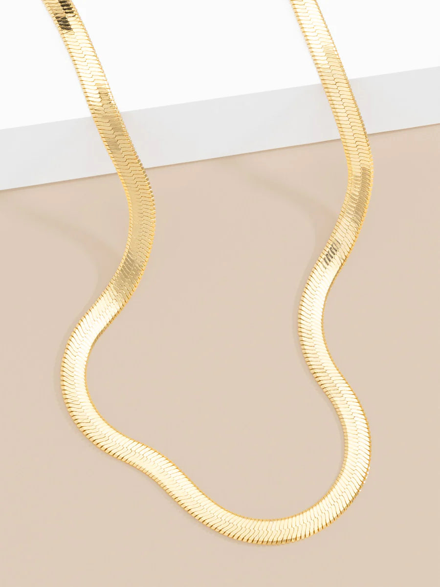 Collar necklace composed of a single 18K gold-plated snake chain strand.
